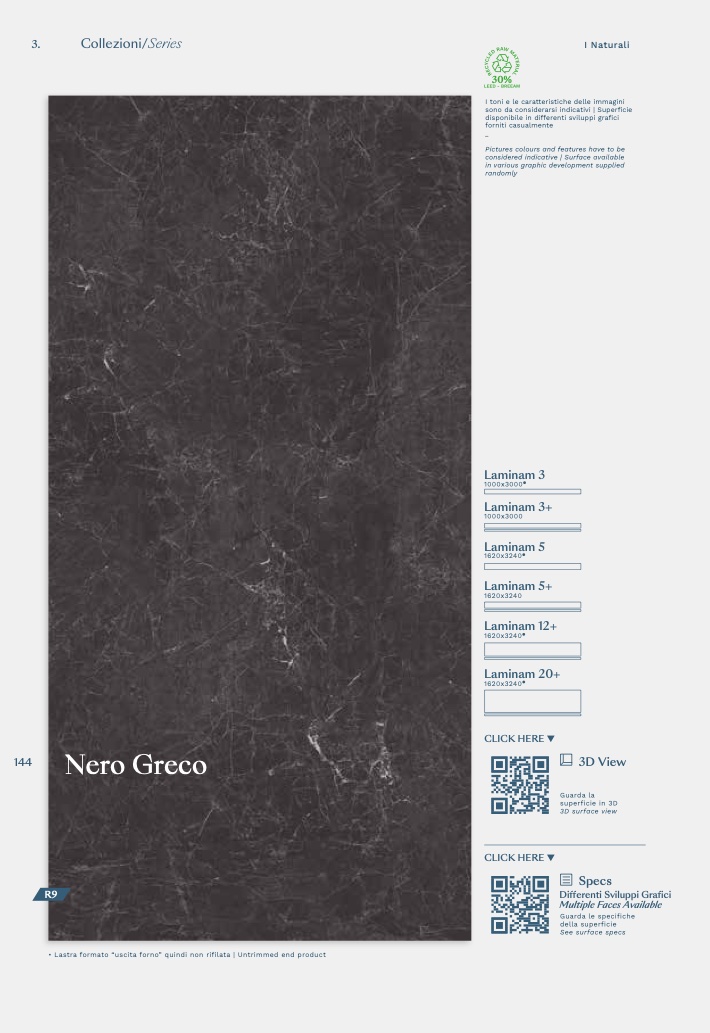 • Lastra formato “uscita forno” quindi non rifilata | Untrimmed end product