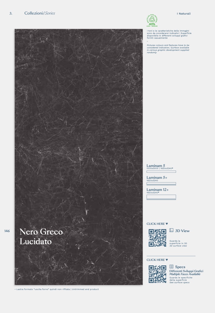 • Lastra formato “uscita forno” quindi non rifilata | Untrimmed end product