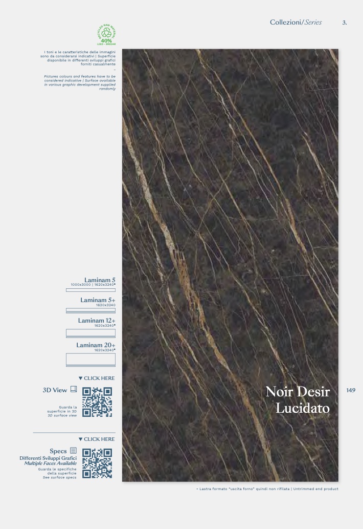 • Lastra formato “uscita forno” quindi non rifilata | Untrimmed end product