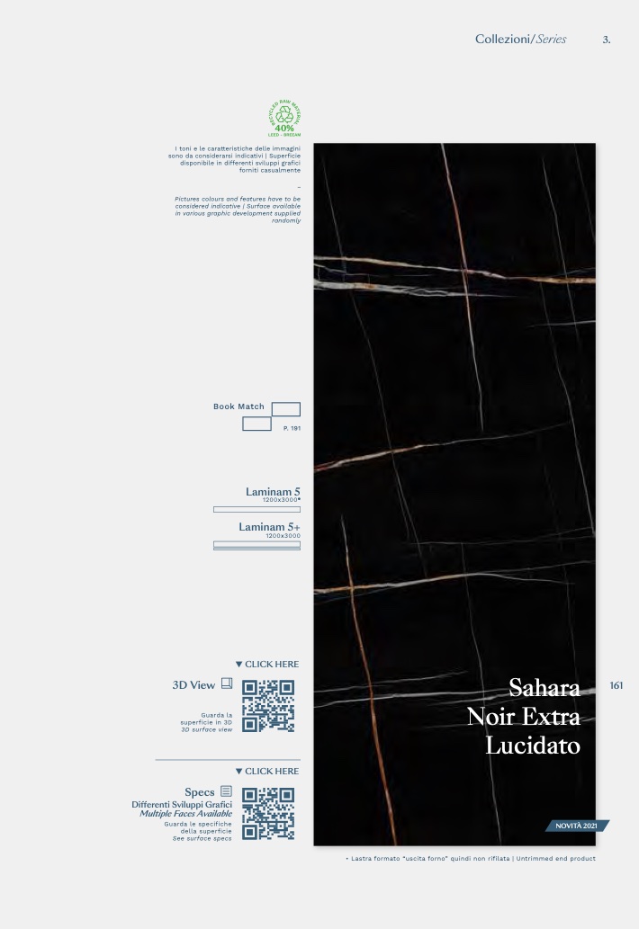 • Lastra formato “uscita forno” quindi non rifilata | Untrimmed end product