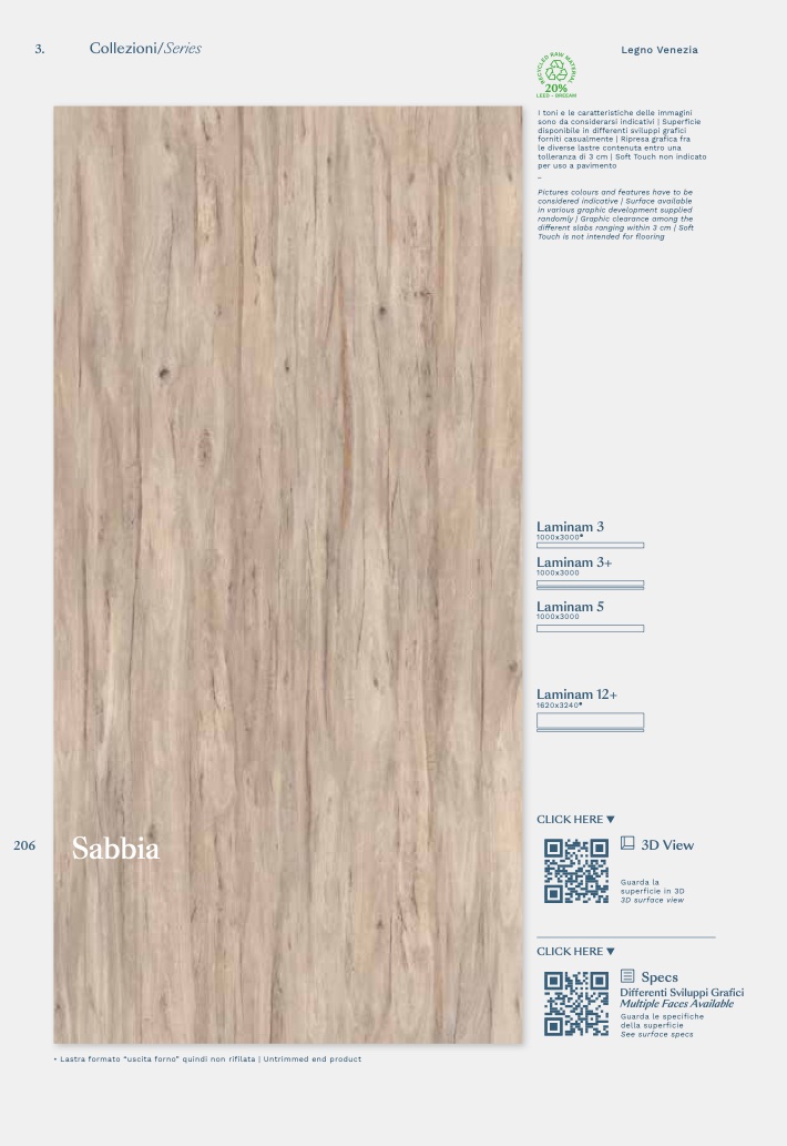 • Lastra formato “uscita forno” quindi non rifilata | Untrimmed end product