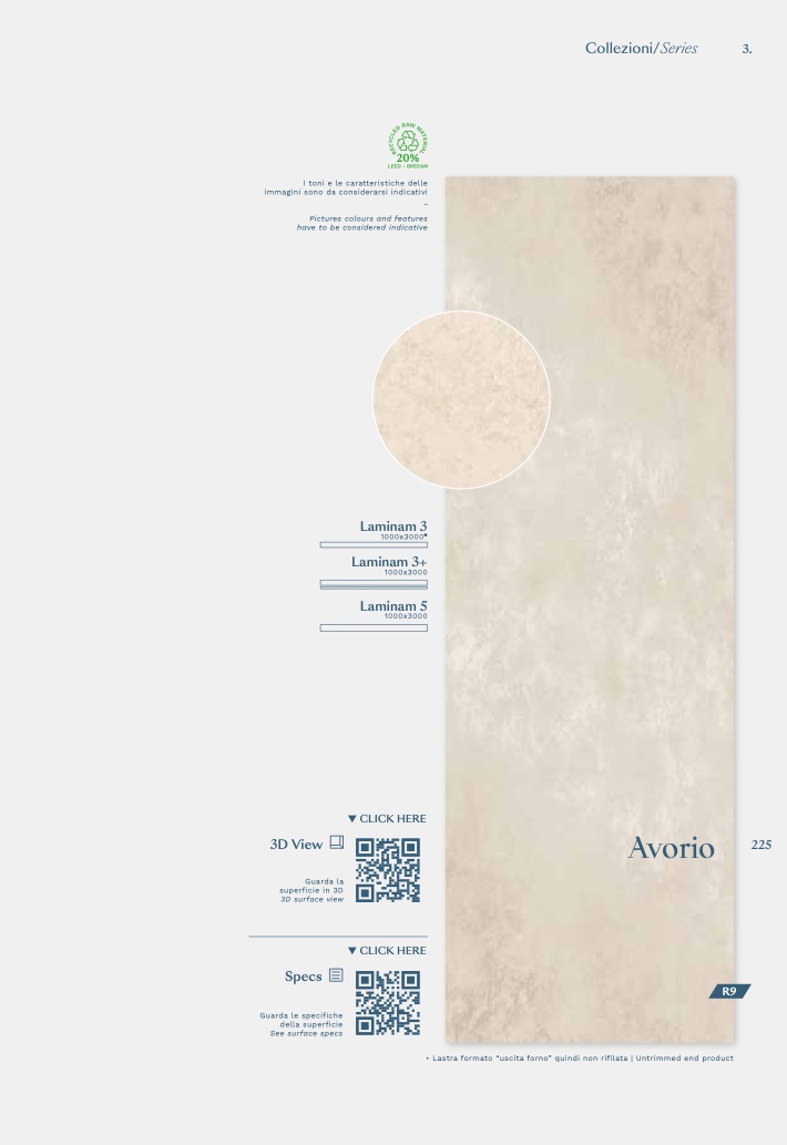 • Lastra formato “uscita forno” quindi non rifilata | Untrimmed end product