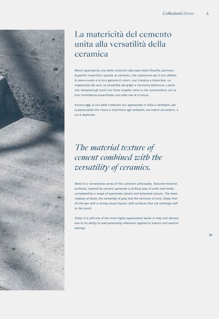 Blend is a cornerstone series of the Laminam philosophy. Textured material