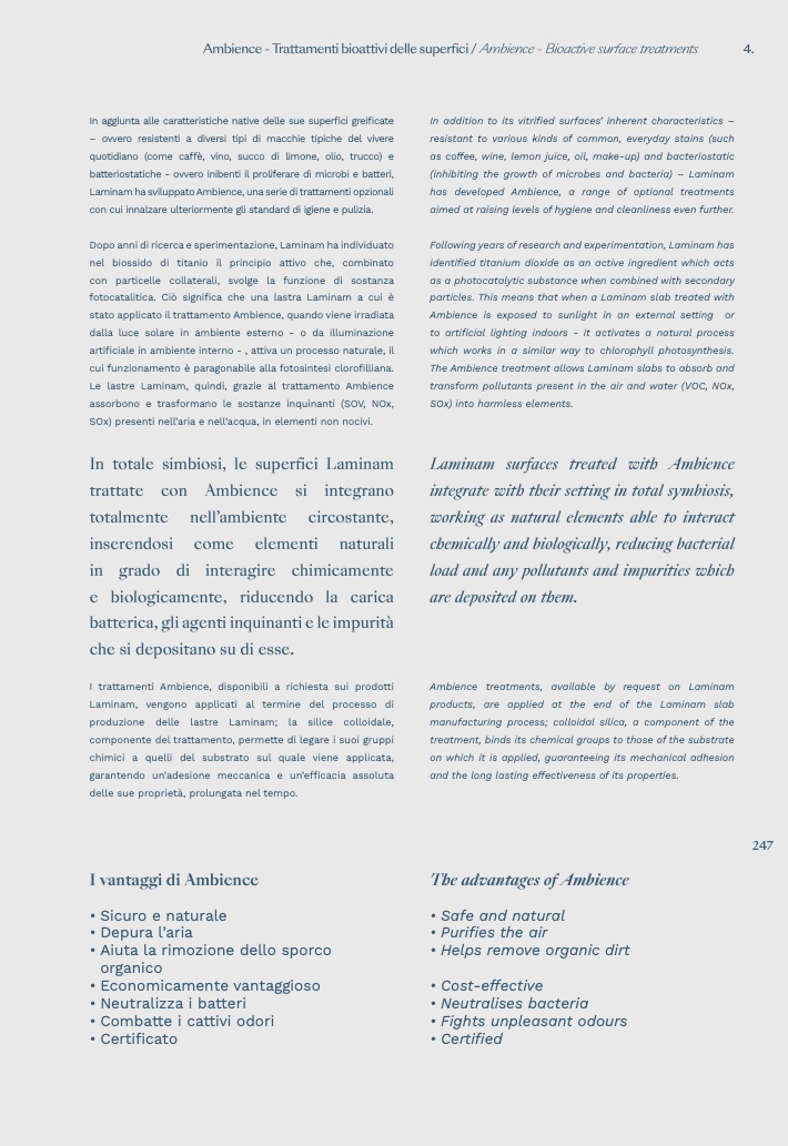 Laminam ha sviluppato Ambience, una serie di trattamenti opzionali