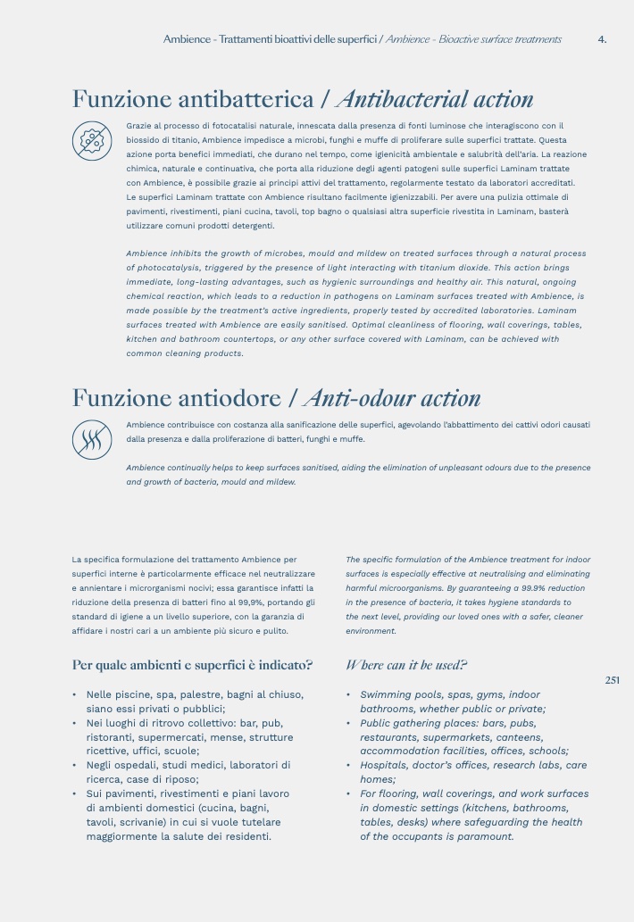 chimica, naturale e continuativa, che porta alla riduzione degli agenti patogeni sulle superfici Laminam trattate