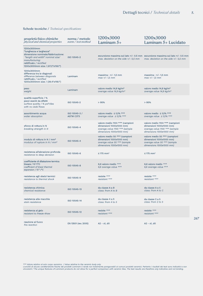 vincolanti / The unique features of Laminam products do not allow for a perfect comparison with ceramic tiles. The test results are therefore only indicative and not binding.