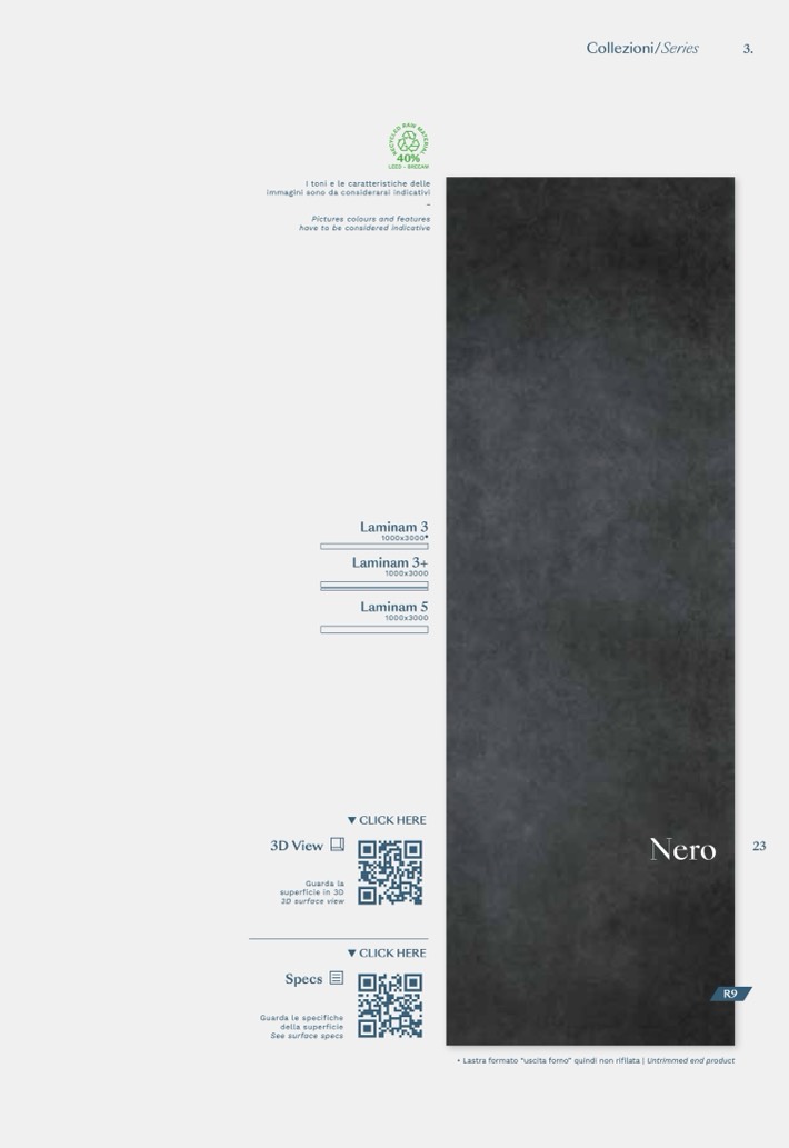 • Lastra formato “uscita forno” quindi non rifilata | Untrimmed end product