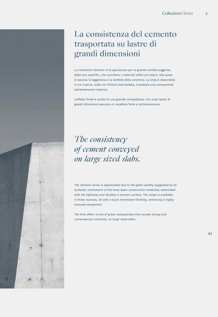 The Cementi series is appreciated due to the great solidity suggested by its