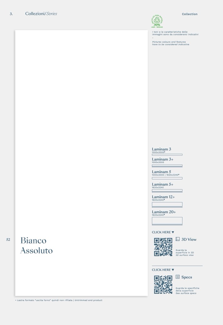 • Lastra formato “uscita forno” quindi non rifilata | Untrimmed end product