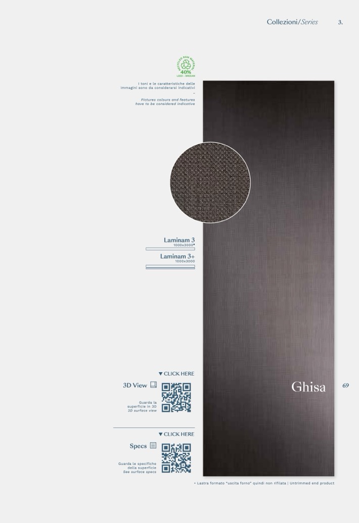 • Lastra formato “uscita forno” quindi non rifilata | Untrimmed end product