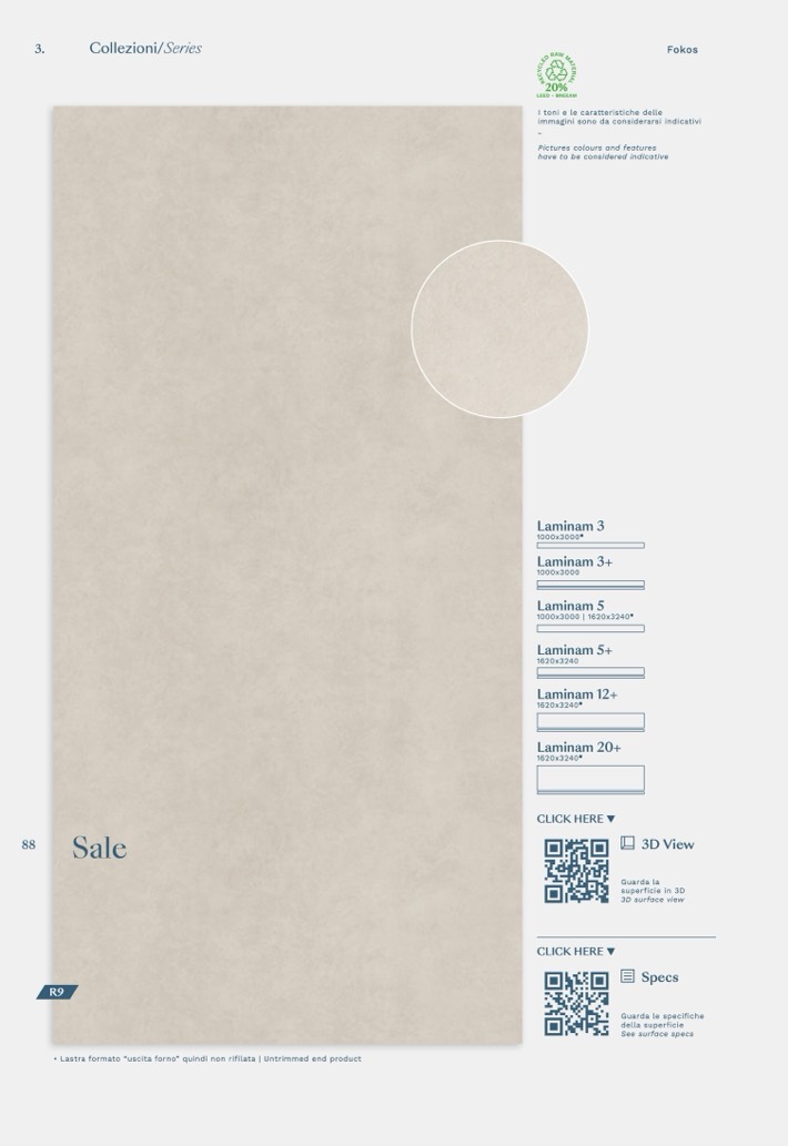 • Lastra formato “uscita forno” quindi non rifilata | Untrimmed end product