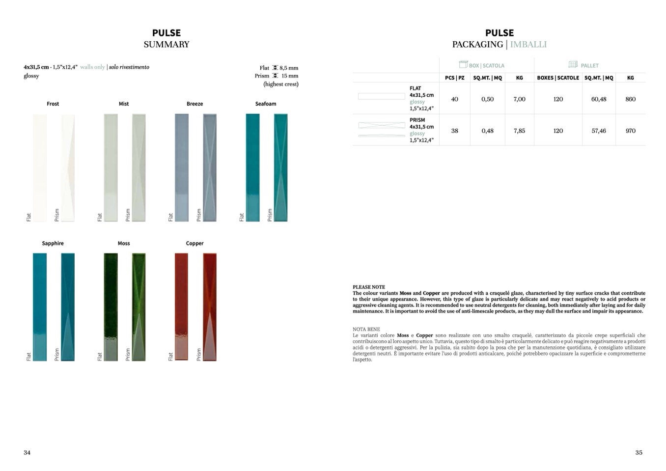 Le varianti colore Moss e Copper sono realizzate con uno smalto craquelé, caratterizzato da piccole crepe superficiali che