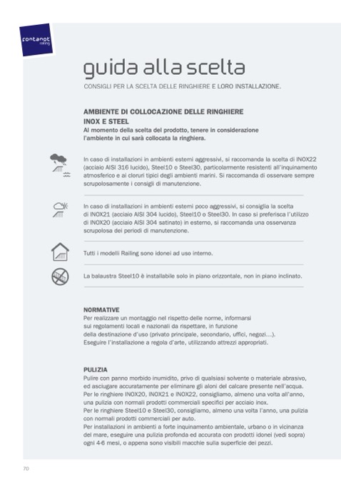 Per le ringhiere Steel10 e Steel30, consigliamo, almeno una volta l’anno, una pulizia