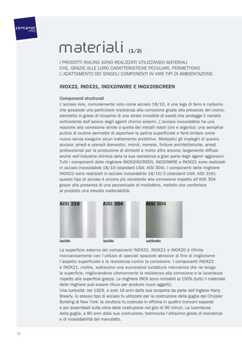 in acciaio inossidabile 18/10 (standard USA: AISI 304). I componenti delle ringhiere