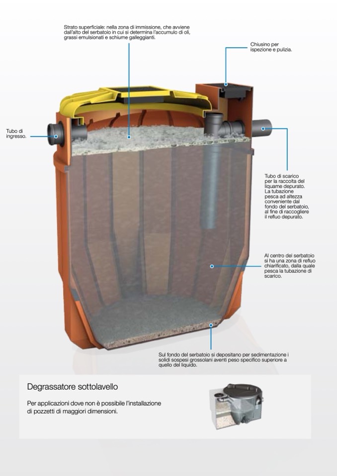 Sul fondo del serbatoio si depositano per sedimentazione i