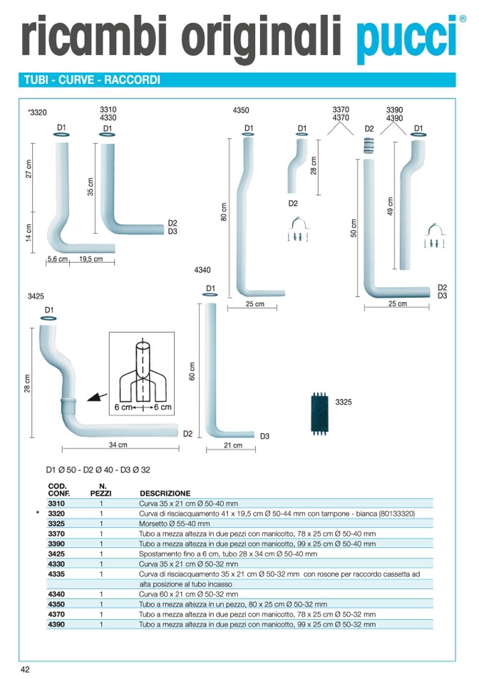 D1 Ø 50 - D2 Ø 40 - D3 Ø 32