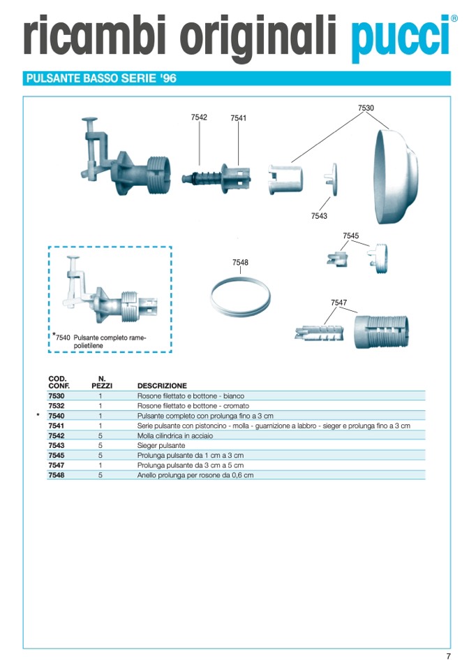 Serie pulsante con pistoncino - molla - guarnizione a labbro - sieger e prolunga fino a 3 cm
