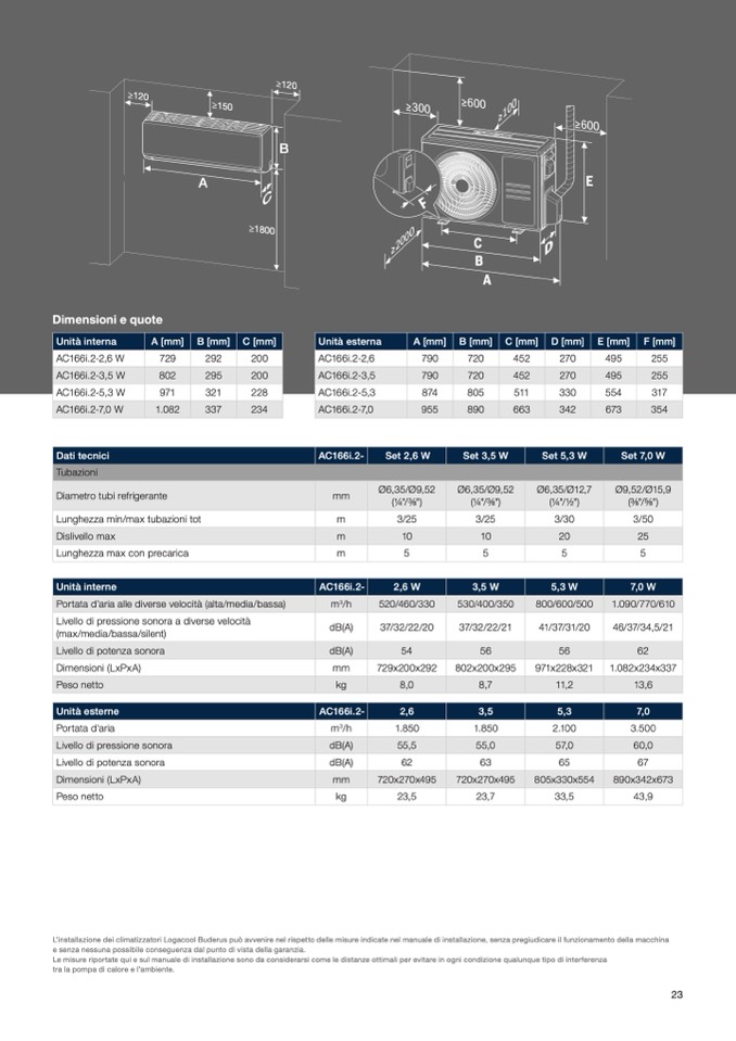 L’installazione dei climatizzatori Logacool Buderus può avvenire nel rispetto delle misure indicate nel manuale di installazione, senza pregiudicare il funzionamento della macchina