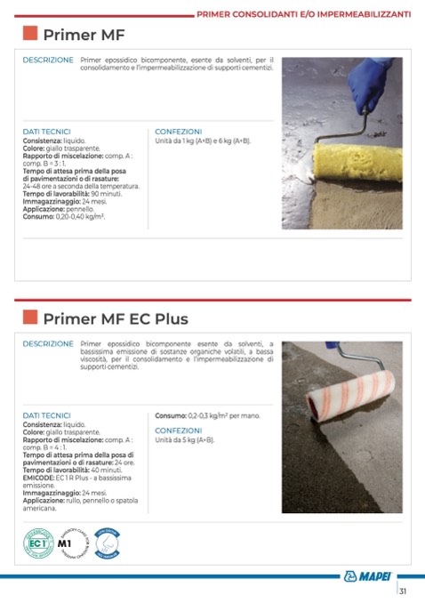 Consumo: 0,2-0,3 kg/m2 per mano.