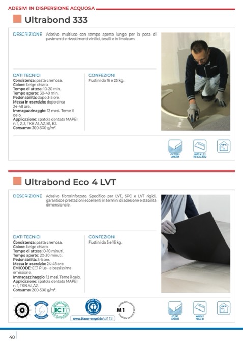 DESCRIZIONE Adesivo fibrorinforzato. Specifico per LVT, SPC e LVT rigidi,