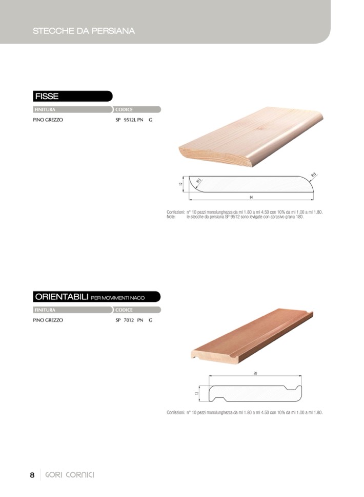 le stecche da persiana SP 9512 sono levigate con abrasivo grana 180.