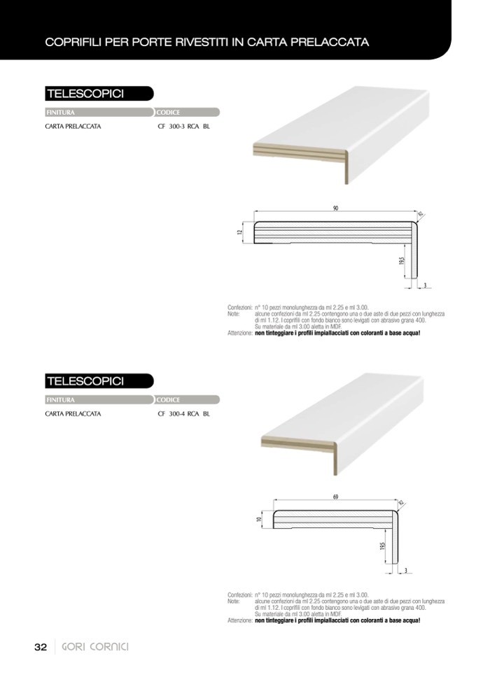 di ml 1.12. I coprifili con fondo bianco sono levigati con abrasivo grana 400.