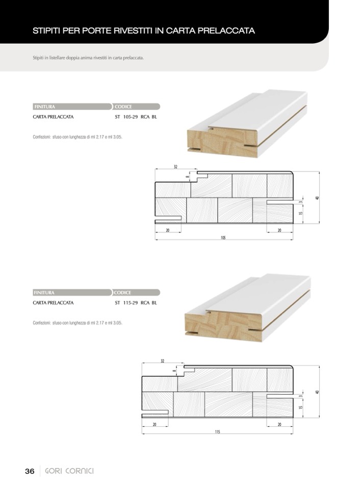Stipiti in listellare doppia anima rivestiti in carta prelaccata.