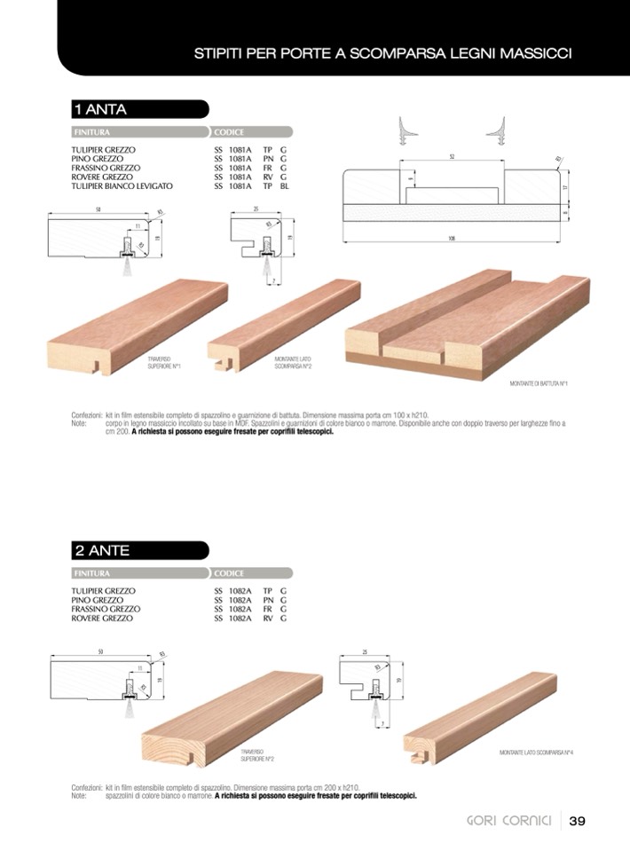 spazzolini di colore bianco o marrone. A richiesta si possono eseguire fresate per coprifili telescopici.