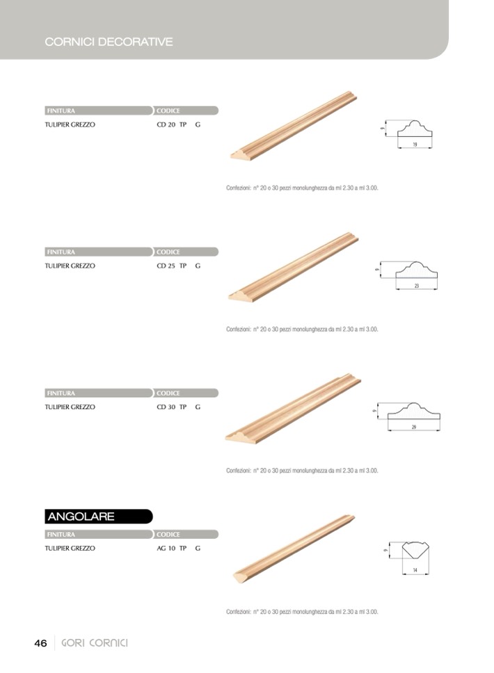 Confezioni: n° 20 o 30 pezzi monolunghezza da ml 2.30 a ml 3.00.
