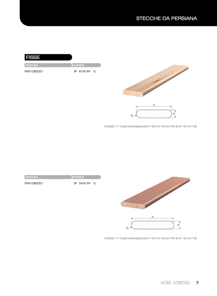 Confezioni: n° 10 pezzi monolunghezza da ml 1.80 a ml 4.50 con 10% da ml 1.00 a ml 1.80.