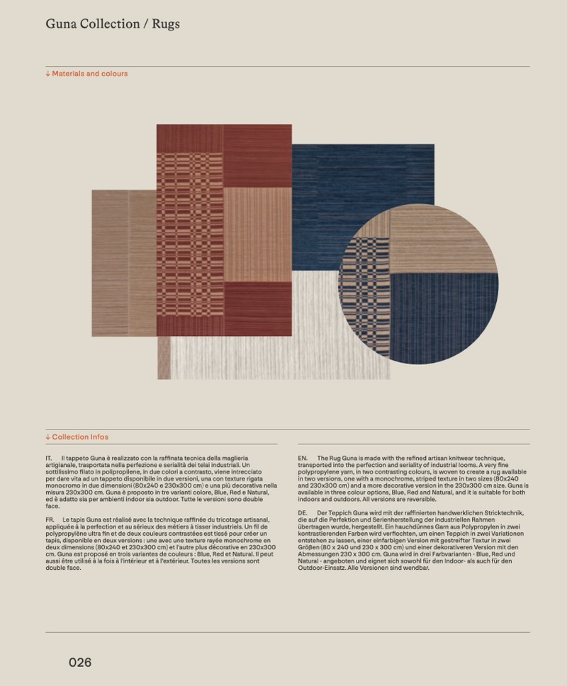 IT. Il tappeto Guna è realizzato con la raffinata tecnica della maglieria