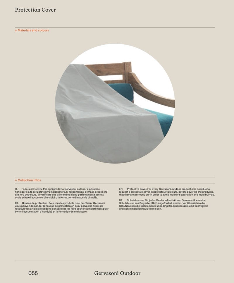 EN. Protective cover. For every Gervasoni outdoor product, it is possible to