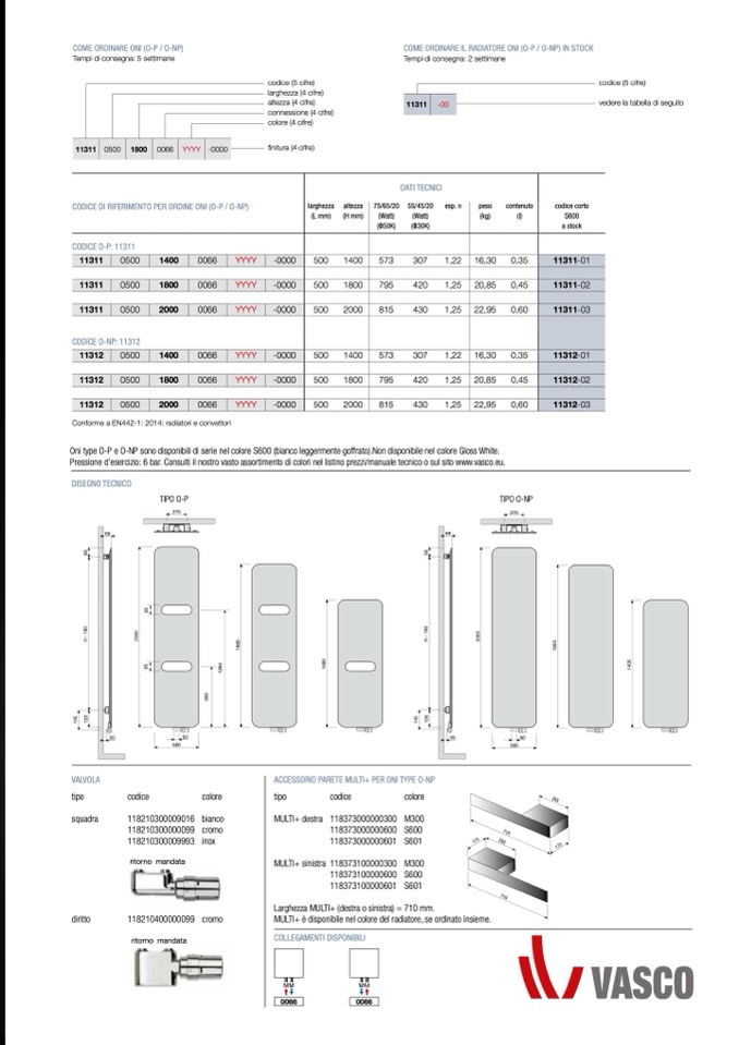 Pressione d’esercizio: 6 bar. Consulti il nostro vasto assortimento di colori nel listino prezzi/manuale tecnico o sul sito www.vasco.eu.