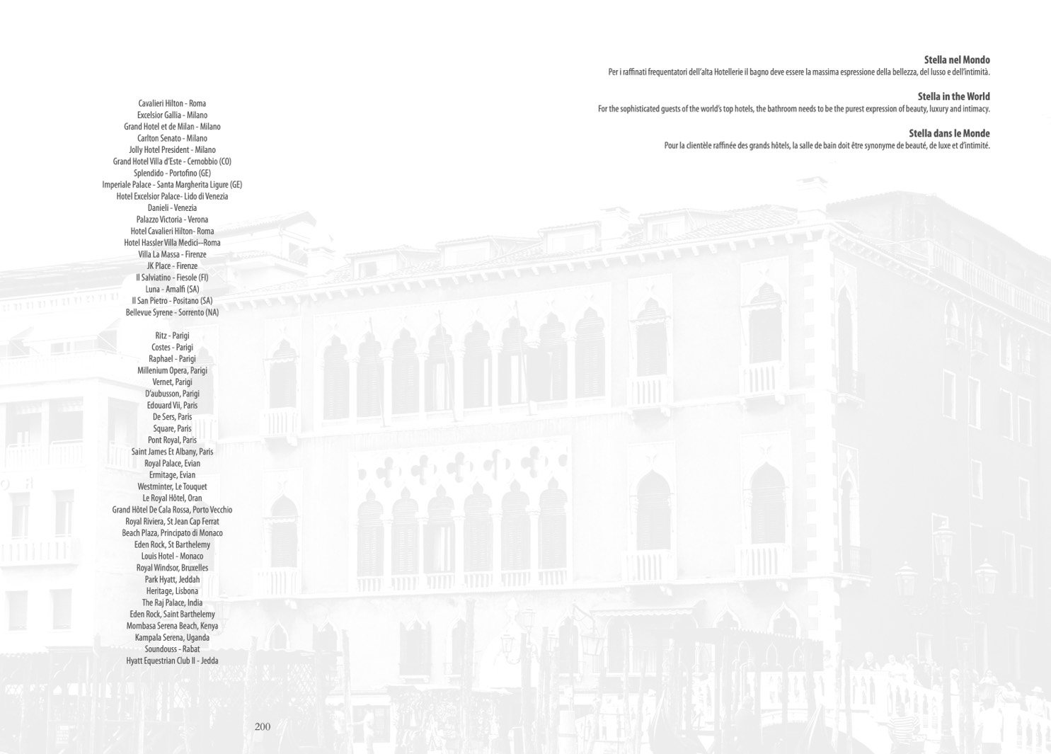 Per i raffinati frequentatori dell’alta Hotellerie il bagno deve essere la massima espressione della bellezza, del lusso e dell’intimità.
