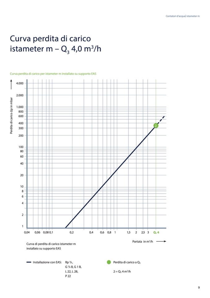 Curva perdita di carico per istameter m installato su supporto EAS