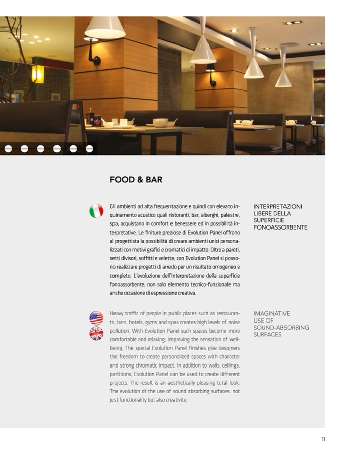 quinamento acustico quali ristoranti, bar, alberghi, palestre,