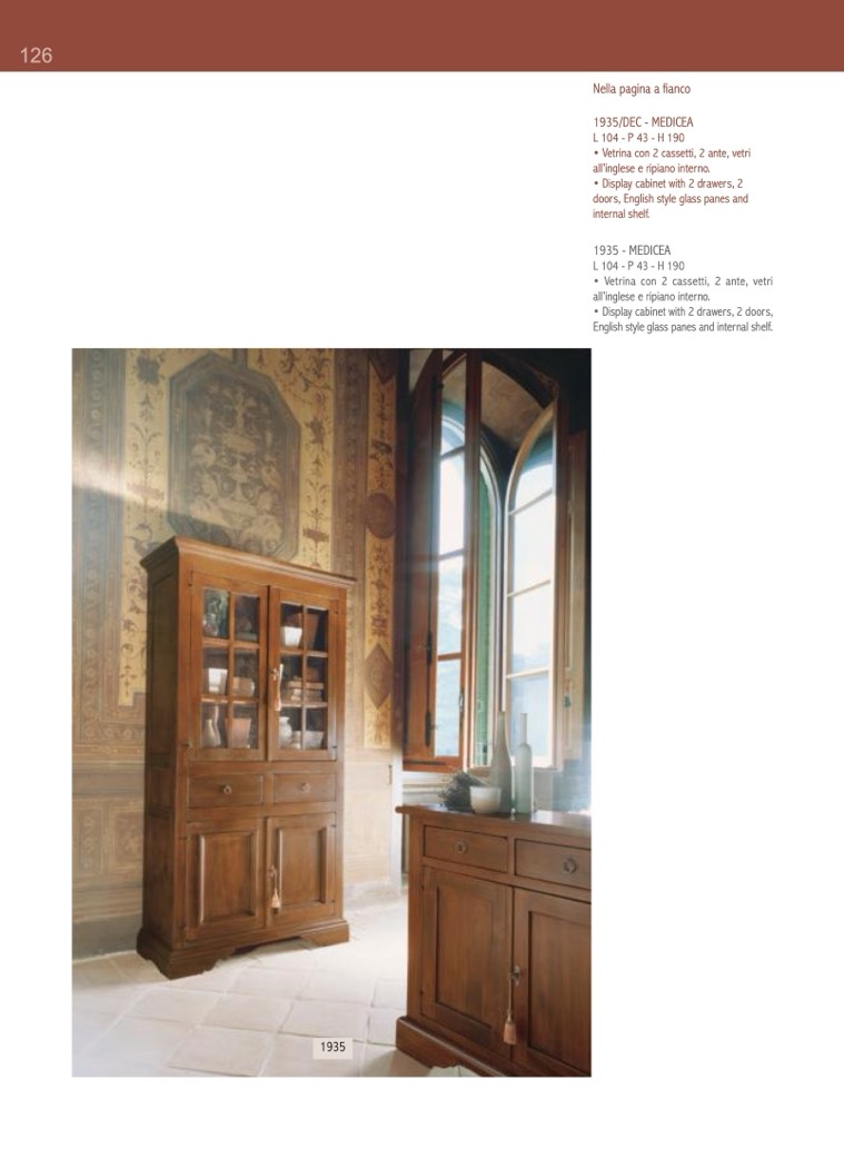 • Vetrina con 2 cassetti, 2 ante, vetri