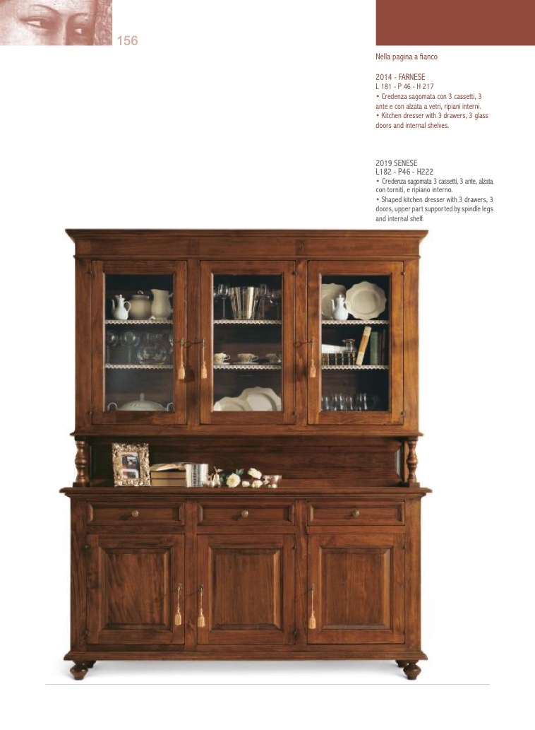 • Credenza sagomata 3 cassetti, 3 ante, alzata