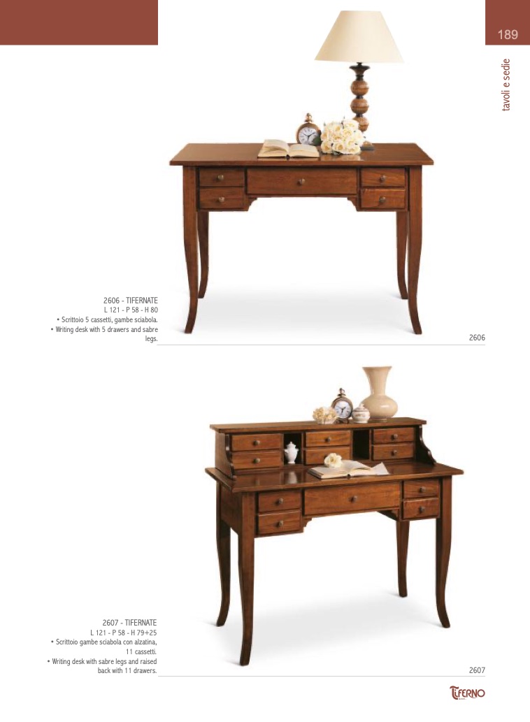 • Scrittoio 5 cassetti, gambe sciabola.