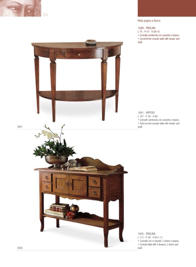 • Consolle con 4 cassetti, 2 antine e ripiano.