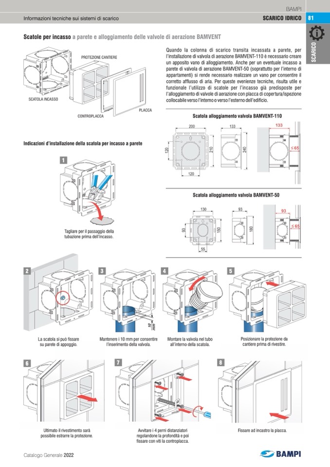 Scatole per incasso a parete e alloggiamento delle valvole di aerazione BAMVENT