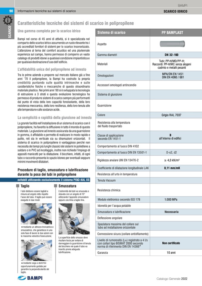 Caratteristiche tecniche dei sistemi di scarico in polipropilene