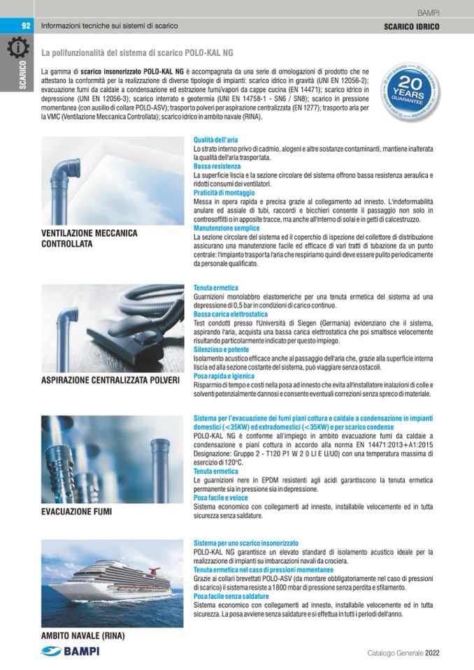 la VMC (Ventilazione Meccanica Controllata); scarico idrico in ambito navale (RINA).
