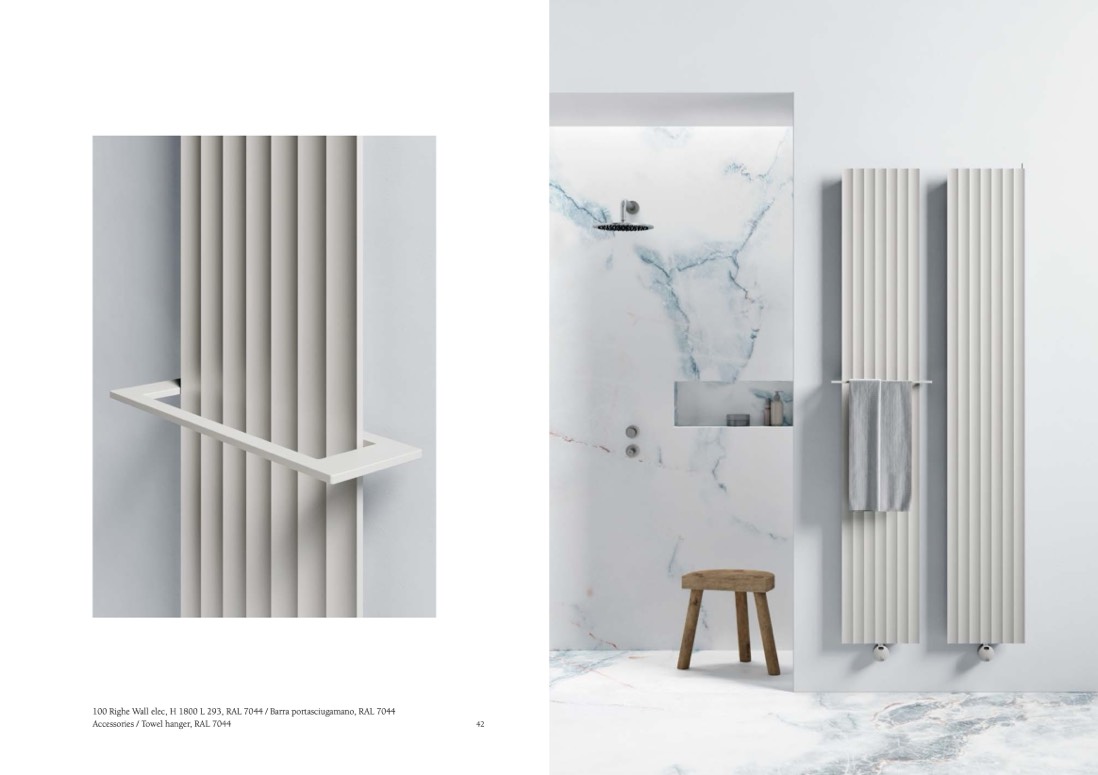100 Righe Wall elec, H 1800 L 293, RAL 7044 / Barra portasciugamano, RAL 7044