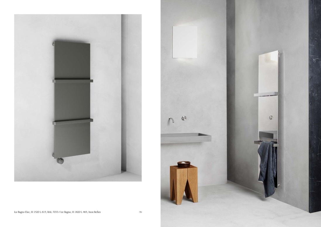 Ice Bagno Elec, H 1520 L 615, RAL 7033 / Ice Bagno, H 1820 L 465, Inox Reflex