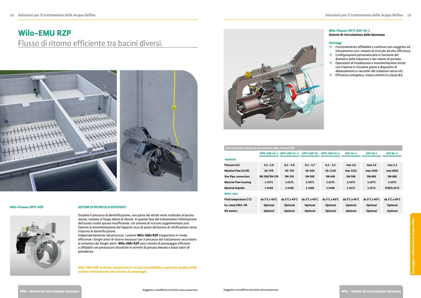 al serbatoio dei fanghi attivi. Wilo-EMU RZP sono sistemi di pompaggio efficienti