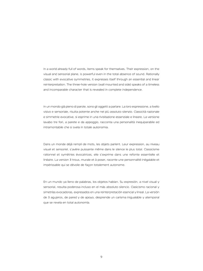reinterpretation. The three-hole version (wall mounted and side) speaks of a timeless