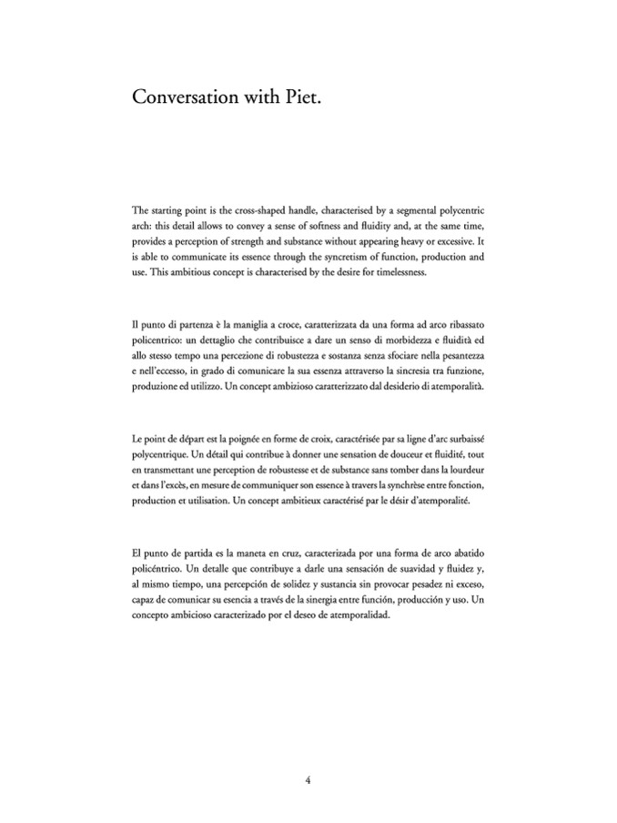 Il punto di partenza è la maniglia a croce, caratterizzata da una forma ad arco ribassato