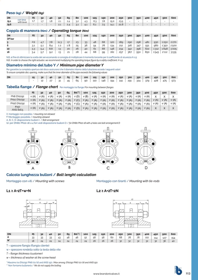 * Massimo tra EN1092 PN6/10/16 and ANSI 150 /Max among: EN1092 PN6/10/16 and ANSI 150.