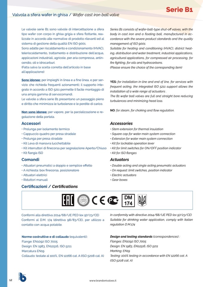 Collaudo: testate al 100%, EN 12266 cat. A (ISO 5208 cat. A)